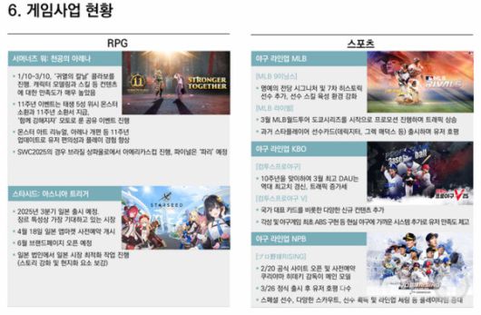 야구 게임 라인업은 국내외 프로야구 개막 시즌을 전후해 야구 팬들로부터 큰 호응을 얻으며, 스포츠 게임 장르 매출이 전년 동기 대비 21.3% 성장했다. 또한 해외 매출 비중이 67.6%를 차지했다.