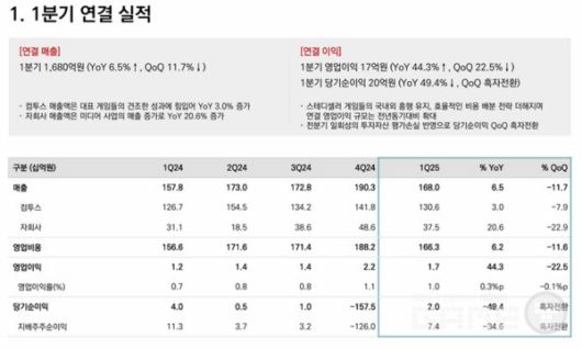 컴투스가 5월 13일, 2025년 1분기 실적을 발표했다.