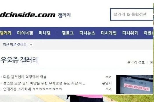 우울증 갤러리. 디시인사이드 누리집 갈무리 |