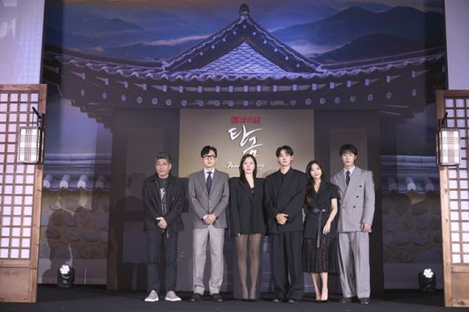 김홍선 감독, 배우 박병은 엄지원 정가람 조보아 이재욱(왼쪽부터)이 넷플릭스 새 시리즈 '탄금' 제작발표회에 참석해 다양한 이야기를 전했다. /넷플릭스 |