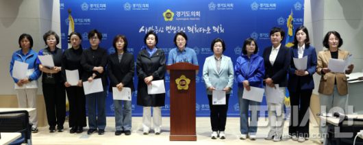 더불어민주당 경기도당 여성지방의원협의회는 13일 도의회 브리핑룸에서 기자회견을 열고 "의회 사무처 직원에게 저질 성희롱 발언을 자행한 국민의힘 소속 A운영위원장의 사퇴를 촉구한다"고 밝혔다.