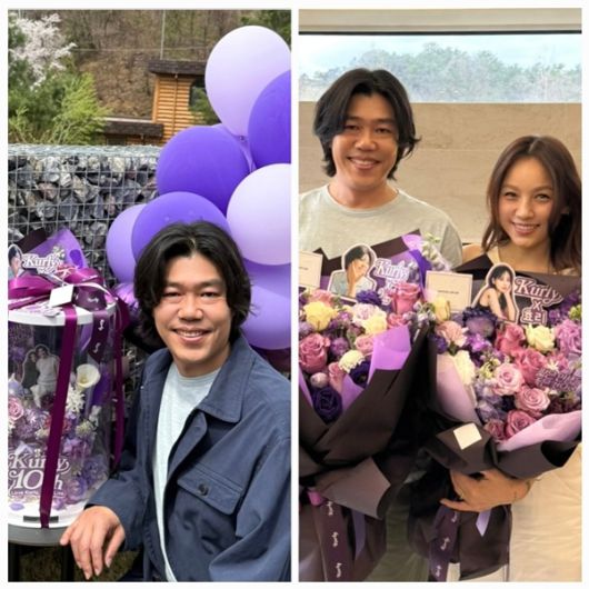 12일 이상순은 자신의 개인 SNS에 이효리와 함께한 투샷을 공개했다. 사진 속 두 사람은 화사한 보라·연보라 컬러의 꽃다발을 나란히 들고 환한 미소를 지어 보였다.