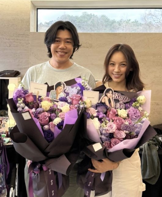이효리는 특유의 건강미 넘치는 내추럴 스타일과 광택 있는 웨이브 헤어로 이상순의 변화와 완벽한 투샷을 완성했다. 두 사람이 들고 있는 꽃다발에도 Kurly x 효리라는 문구가 적혀 있어 눈길을 끌었다. 부부가 함께 브랜드 행사에 참석하거나, 팬들에게 감사 인사를 전한 것으로 추정된다.