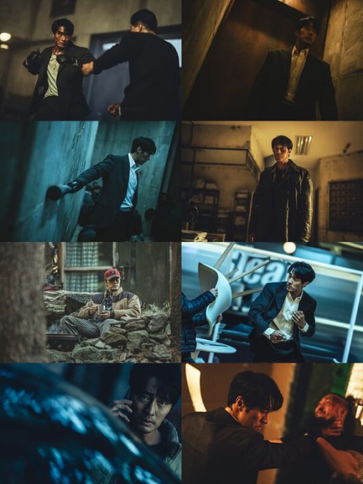이어지는 스틸들은, 무자비하게 상대방의 목을 조르고 있거나, 피투성이가 된 얼굴로도 굴하지 않고 상대방과 맞서 싸우고 있는 모습, 쓰러진 적들을 뒤로한 채 그의 시그니처 무기인 야구배트를 들고 있는 '기준'을 통해 냉혹하고도 고독한 그의 복수의 여정을 보여준다.