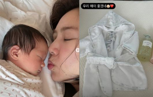 손담비는 13일 자신의 SNS를 통해 "우리 해이 좋겠네"라는 글과 함께 한 장의 사진을 공개했다.