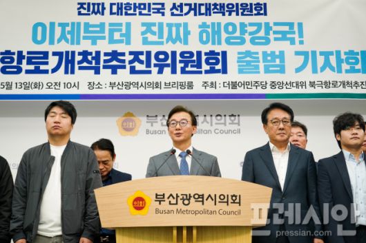 더불어민주당 중앙선거대책위원회는 13일 오전 부산시의회에서 기자회견을 열고 '북극항로개척추진위원회'의 출범을 발표했다.