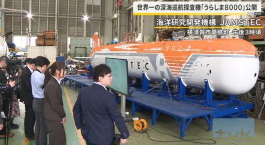 13일 니혼게이자이신문(닛케이), 산케이신문 등에 따르면 전날 일본해양연구개발기구(JAMSTEC)는 새롭게 개발한 심해 순항 탐사선 '우라시마 8000'을 공개했다.