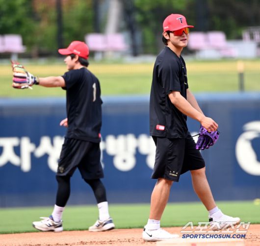 13일 광주KIA챔피언스필드에서 열린 롯데와 KIA의 경기, KIA 김도영과 박찬호가 수비훈련을 하고 있다. 광주=허상욱 기자wook@sportschosun.com/2025.05.13/