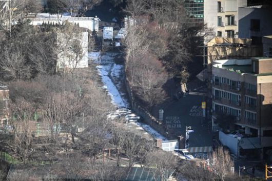 1월 9일 서울 용산구 한남동 대통령 관저에서 경호처 관계자들이 입구에 승용차와 경찰차로 차벽을 세워 경계를 강화하고 있다. 정다빈 기자 |