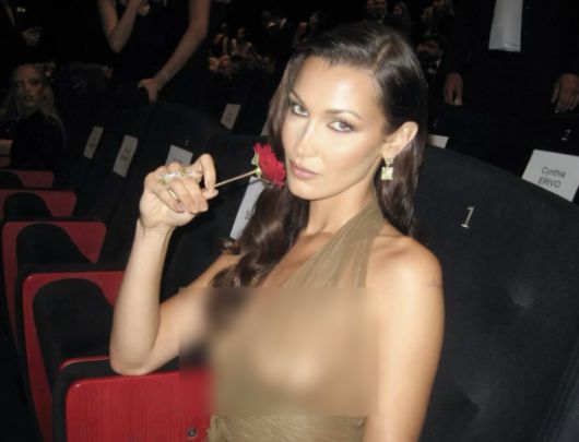 지난해 칸 영화제에 모델 벨라 하디드는 가슴이 드러나는 시스루 드레스를 입고 등장했다. 벨라 하디드 인스타그램 |