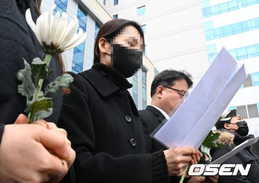 [OSEN=수원, 조은정 기자]웹툰작가 주호민으로부터 아동 학대 혐의로 고소를 당해 선고 유예 판결을 받은 특수교사 A씨가 6일 경기도 수원시 영통구 수원지방법원에서 기자회견을 열었다. 1심 법원은 지난 1일 A씨에게 벌금 200만원의 선고를 유예했다.특수교사 A씨가 기자회견에서 입장문을 읽고 있다. 2024.02.06 /cej@osen.co.kr |