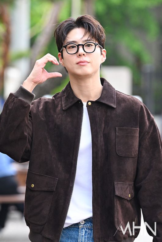 이날 박보검이 출근길에서 포토타임을 갖고 있다.