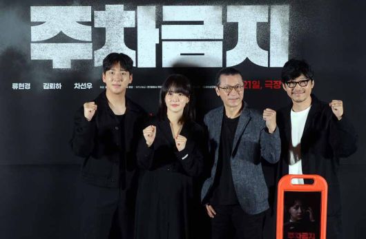 배우 차선우, 류현경, 김뢰하, 손현우 감독(왼쪽부터)이 13일 서울 성동구 메가박스 성수점에서 열린 영화 '주차금지' 기자간담회에서 포즈를 취하고 있다.사진=김두홍 기자 kimdh@sportsworldi.com#김두홍 기자 kimdh@sportsworldi.com ⓒ 스포츠월드