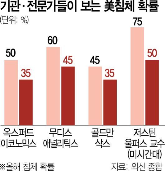 일단 교역 중단 위기를 넘기면서 미국이 경기 침체에 빠질 확률도 낮아졌다는 평가다. 라이언 스윗 옥스퍼드이코노믹스 미국 수석 이코노미스트는 올해 경기 침체 확률을 50%에서 35%로 낮췄다. 월가의 대표 투자은행인 골드만삭스도 경기 침체 가능성을 당초 45%에서 35%로 낮췄다. 무디스애널리틱스는 기존 60%에서 45%로 줄였으며 앞서 경기 침체 확률을 75%로 전망했던 저스틴 울퍼스 미시간대 교수는 전망치를 50%로 수정했다.