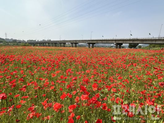 ▲나주시가 영산강 둔치체육공원과 영산강 정원 들섬 일원 14만㎡(약 4만2000평)에 꽃양귀비 단지를 조성했다.ⓒ프레시안 |