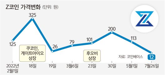 상장피를 대가로 Z코인 상장이 이뤄졌지만 이후 가격이 폭락하면서 투자자들은 큰 손실을 봤다. 쿠코인, 게이트아이오 상장 당시 320원대로 출발한 Z코인은 같은 해 7월 12원까지 90% 넘게 가격이 내렸다.