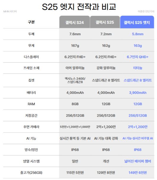 한편, 갤럭시 S25 엣지는 오는 14일부터 20일까지 사전 판매를 진행하며, 23일 공식 출시된다.