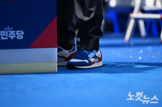 지난 20대 대통령 선거 때 이 후보는 파란색 운동화를 신었습니다. 이 후보는 출정식에서 "이제부터 진보의 문제는 없다, 보수의 문제도 없다. 오로지 대한민국의 문제, 국민의 문제만이 있을 뿐"이라고 말했는데요.민주당이 이 후보의 대선 기호인 1번 숫자 안에 빨간색을 넣은 것도 같은 맥락입니다.