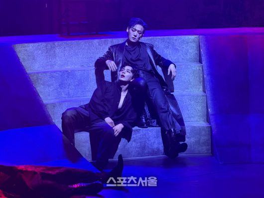 양지원과 유승호가 13일 연극 ‘킬링시저’ 프레스콜에서 주요 장면 ‘브루터스의 최후’를 시연하고 있다. 사진 | 표권향 기자 gioia@sportsseoul.com |