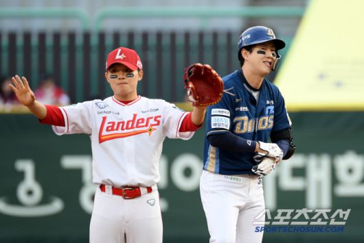 13일 인천 SSG랜더스필드에서 열린 SSG 랜더스와 NC 다이노스의 경기. 1회초 2사 2루 NC 박건우가 적시타를 날린 뒤 환호하고 있다. 인천=박재만 기자 pjm@sportschosun.com/2025.05.13/