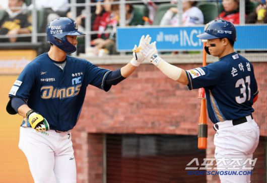 13일 인천 SSG랜더스필드에서 열린 SSG 랜더스와 NC 다이노스의 경기. 1회초 1사 NC 김주원이 솔로포를 날린 뒤 환호하고 있다. 인천=박재만 기자 pjm@sportschosun.com/2025.05.13/ |