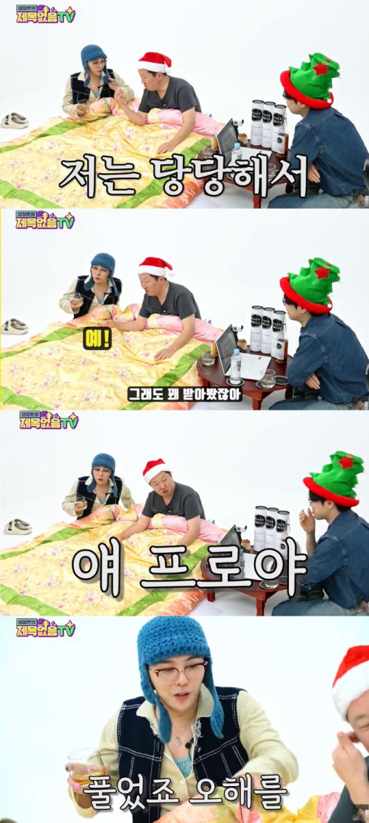 13일 정형돈의 '제목없음TV' 채널에는 지드래곤이 '굿데이'의 보은의 뜻으로 전격 출연, 정형돈과 금침에 함께 누워 한 이불 속에서 토크하는 눕방을 펼쳤다.