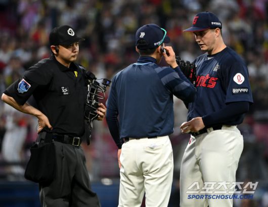 13일 광주KIA챔피언스필드에서 열린 롯데와 KIA의 경기, 4회말 무사 1,3루 롯데 데이비슨이 KIA 변우혁 타석때 피치컴 문제로 애를 먹고 있다. 광주=허상욱 기자wook@sportschosun.com/2025.05.13/