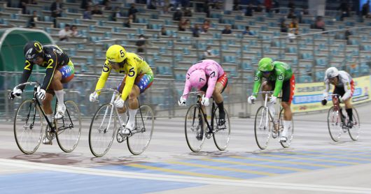 광명스피돔에서 열린 특선급 경주에서 임채빈(5번)과 정종진(2번)이 결승선 앞에서 경합을 벌이고 있다. 국민체육진흥공단 제공 |