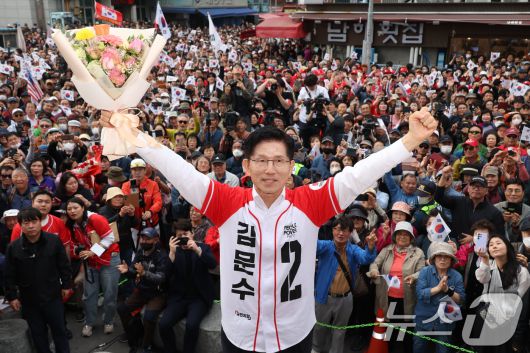 김문수 국민의힘 대통령 후보가 13일 부산 중구 자갈치시장에서 유세를 하고 있다. 2025.5.13/뉴스1 ⓒ News1 김민지 기자 |