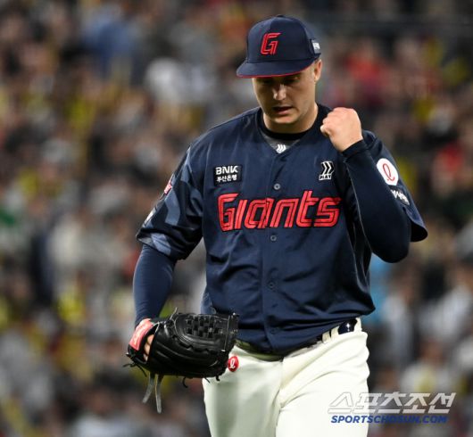13일 광주KIA챔피언스필드에서 열린 롯데와 KIA의 경기, 4회말 1사 1,3루 롯데 데이비슨이 KIA 정해원을 병살로 처리하며 이닝을 끝낸 후 기뻐하고 있다. 광주=허상욱 기자wook@sportschosun.com/2025.05.13/ |