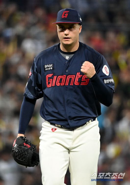 13일 광주KIA챔피언스필드에서 열린 롯데와 KIA의 경기, 4회말 1사 1,3루 롯데 데이비슨이 KIA 정해원을 병살로 처리하며 이닝을 끝낸 후 기뻐하고 있다. 광주=허상욱 기자wook@sportschosun.com/2025.05.13/