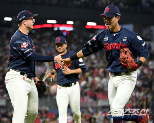 13일 광주KIA챔피언스필드에서 열린 롯데와 KIA의 경기, 4회말 1사 1,3루 롯데 데이비슨이 KIA 정해원을 병살로 처리하며 이닝을 끝낸 후 기뻐하고 있다. 광주=허상욱 기자wook@sportschosun.com/2025.05.13/