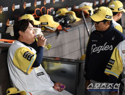 13일 대전 한화생명볼파크에서 열린 두산-한화전. 5회초 1실점한 류현진이 이닝을 마치고 내려오자 양상문 투수코치가 투구의사를 물어보고 있다. 대전=정재근 기자 cjg@sportschosun.com/2025..5.13/