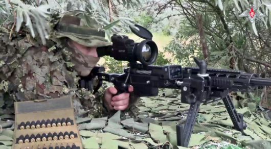 2024년 6월 러시아군 저격수가 우크라이나에서 최신식 오르시스 T-5000M 소총으로 FPV 드론을 겨누고 있다. 러시아 국방부 자료 |