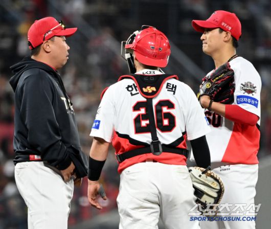 13일 광주KIA챔피언스필드에서 열린 롯데와 KIA의 경기, 6회초 무사 1루 KIA 이범호 감독이 마운드에 올라 김도현과 이야기를 하고 있다. 광주=허상욱 기자wook@sportschosun.com/2025.05.13/