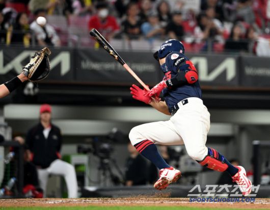 13일 광주KIA챔피언스필드에서 열린 롯데와 KIA의 경기, 6회초 1사 1,2루 롯데 전준우가 KIA 김도현의 투구를 몸에 맞고 있다. 광주=허상욱 기자wook@sportschosun.com/2025.05.13/