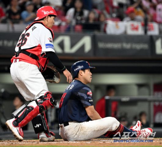 13일 광주KIA챔피언스필드에서 열린 롯데와 KIA의 경기, 6회초 1사 1,2루 롯데 전준우가 KIA 김도현의 투구를 몸에 맞은 뒤 놀란 가슴을 부여잡고 있다. 광주=허상욱 기자wook@sportschosun.com/2025.05.13/