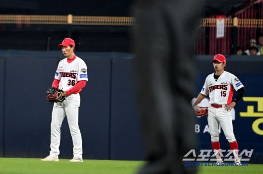 13일 광주KIA챔피언스필드에서 열린 롯데와 KIA의 경기, 6회초 1사 만루 KIA 중견수 박재현이 롯데 손호영의 플라이 타구를 놓친 뒤 아쉬워하고 있다. 광주=허상욱 기자wook@sportschosun.com/2025.05.13/ |