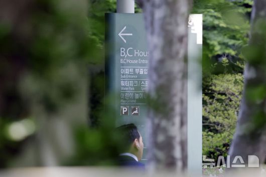 [서울=뉴시스] 최동준 기자 = 지난달 30일 서울 서초동 아크로비스타 앞에서 경호원이 경계 근무를 서고 있는 모습 2025.04.30. photocdj@newsis.com |