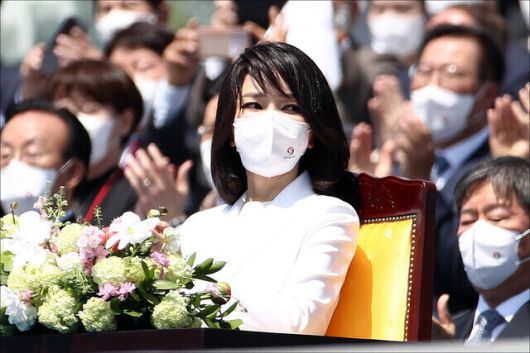 윤석열 전 대통령 배우자 김건희 여사가 2022년 5월10일 국회에서 열린 제20대 대통령 취임식에서 박수를 치고 있다. 국회사진기자단 |