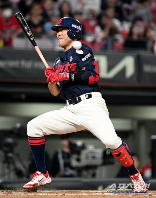 13일 광주KIA챔피언스필드에서 열린 롯데와 KIA의 경기, 6회초 1사 1,2루 롯데 전준우가 KIA 김도현의 투구를 몸에 맞고 있다. 광주=허상욱 기자wook@sportschosun.com/2025.05.13/ |