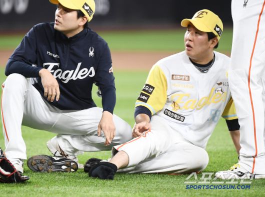 13일 대전 한화생명볼파크에서 열린 두산-한화전. 7회초 2사 김인태의 1루 내야안타 때 베이스커버를 들어간 박상원이 타자의 발에 밟혔다며 양말을 벗어보이고 있다. 대전=정재근 기자 cjg@sportschosun.com/2025..5.13/ |