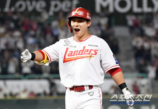 13일 인천 SSG랜더스필드에서 열린 SSG 랜더스와 NC 다이노스의 경기. 8회말 무사 만루 SSG 최준우가 적시타를 날린 뒤 환호하고 있다. 인천=박재만 기자 pjm@sportschosun.com/2025.05.13/