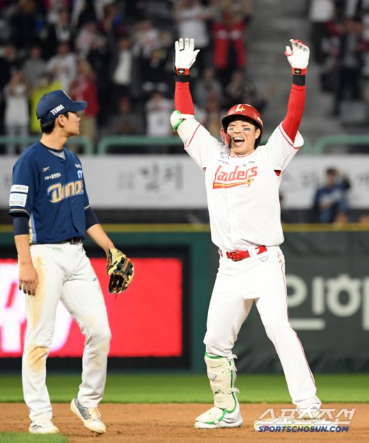 이닝 선두타자 박성한이 볼넷으로 출루했고, 이어 최정의 타구가 내야 안타가 되면서 무사 1,2루. 한유섬이 우익수 오른쪽에 떨어지는 2루타로 2루주자 박성한을 홈까지 불러들였다. SSG가 3-3 동점을 만든 순간이다.