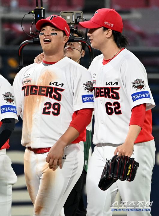13일 광주KIA챔피언스필드에서 열린 롯데와 KIA의 경기, 9회초 2사 만루 KIA 1루수 변우혁이 롯데 레이예스의 타구를 막아내며 경기를 끝낸 후 기뻐하고 있다. 광주=허상욱 기자wook@sportschosun.com/2025.05.13/