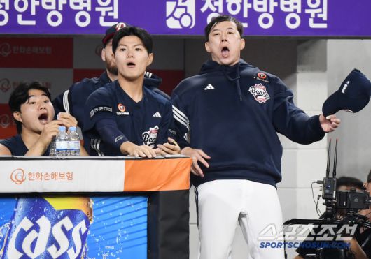 13일 대전 한화생명볼파크에서 열린 두산-한화전. 9회말 2사 1루 최인호의 파울플라이를 포수 김기연과 3루수 임종성이 서로 미루다 놓쳤다. 승리를 확신한 고효준이 크게 아쉬워하고 있다. 대전=정재근 기자 cjg@sportschosun.com/2025..5.13/
