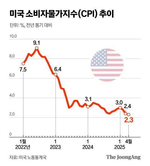 지난달 미국소비자물가지수(CPI)가 예상치보다 소폭 떨어지면서 물가 상승에 대한 우려가 일단 누그러졌다. 지난달 초 미국이 상호관세를 발표한 뒤 처음 공개한 물가 지표인데, 아직은 ‘관세 전쟁’에 따른 직접적 영향이 크지는 않은 걸로 나타났다. 기업들이 재고를 소진하고, 90일 관세 유예 이후의 협상 결과가 좋지 않다면 올해 여름부터는 수입품 가격이 크게 오를 수 있다는 전망이 나온다.