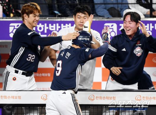 13일 대전 한화생명볼파크에서 열린 두산-한화전. 11회초 2사 2루 임종성의 2루타 때 득점한 전다민이 환영받고 있다. 대전=정재근 기자 cjg@sportschosun.com/2025..5.13/