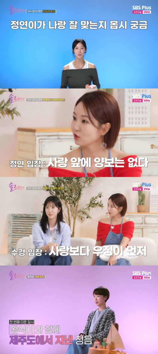 13일 방송된 SBS Plus·E채널 '솔로라서'에는 이수경과 오정연의 데이트 현장, 황정음이 아버지를 최초 공개하고 함께하는 일상이 그려졌다.