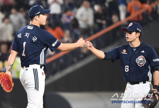 13일 대전 한화생명볼파크에서 열린 두산-한화전. 11회말 승리를 지킨 박치국이 기뻐하고 있다. 대전=정재근 기자 cjg@sportschosun.com/2025..5.13/ |